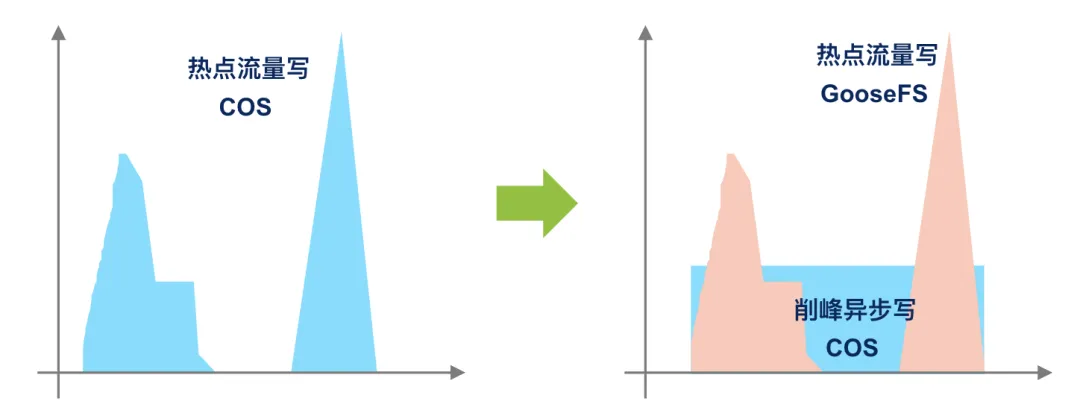GooseFS 写缓存是专为 AI 等高吞吐场景设计的透明加速层。其核心设计理念利用近计算节点的 NVMe 全闪集群构建高性能缓冲池,接管 GPU 产生的高频写入 I/O,再通过异步机制将数据持久化至对象存储。该功能旨在通过"削峰填谷"策略,消除对象存储带宽波动对上层计算任务的影响,确保 GPU 算力不因 I/O 等待而闲置。