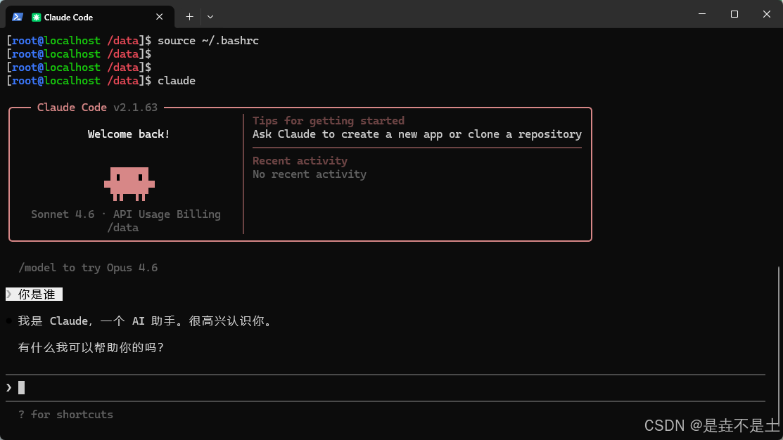 安装完成后,执行以下命令检查 Claude CLI 是否可用: