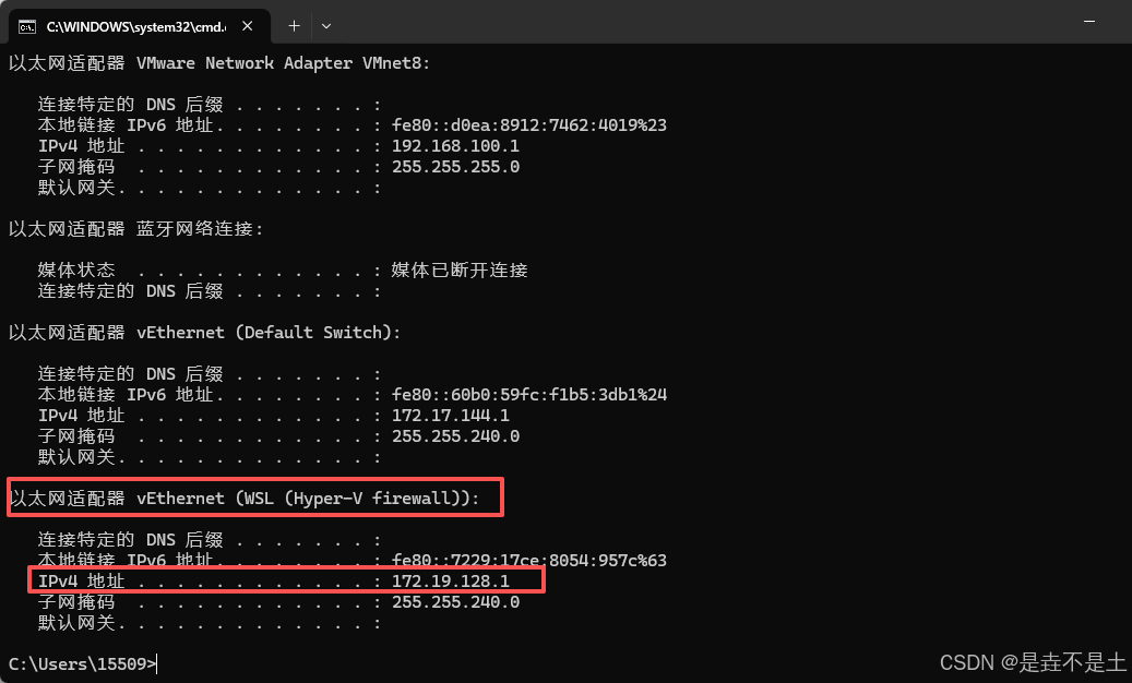 细节:由于采用的是wsl启动的系统,所以配置的网关要是WSL的vEnthernet: