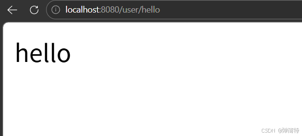 此时我在浏览器输入的URL是:http://localhost:8080/user/hello,得到的结果是: