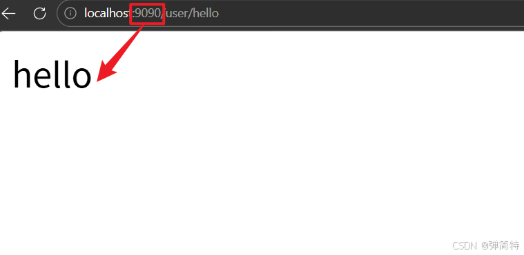 原因就是我们将端口号变为了9090,所以此时正确的URL路径应该是:http://localhost:9090/user/hello
