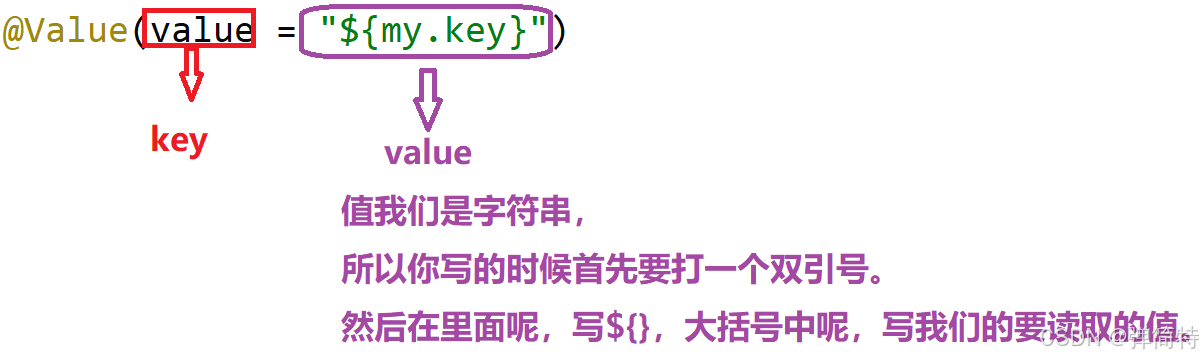 @Value 注解使⽤" ${} "的格式读取,【我们读取值,一般使用的符号都是$】如下代码所⽰: