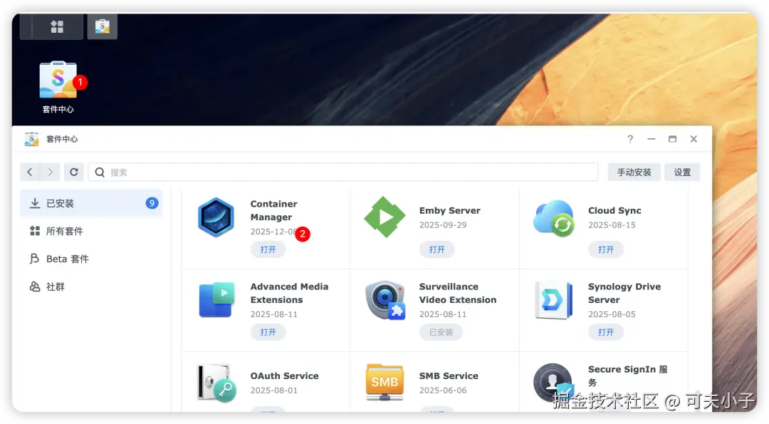 在Nas的进行网页管理界面,套件中心→Container Manager