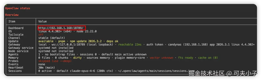 再查看一下openclaw status信息: