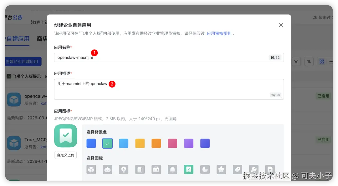 进入open.feishu.cn/app,创建企业自建应...