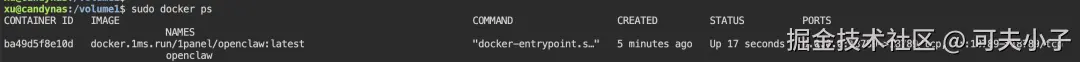 正常情况下,如果你使用我前面的docker run参数,是不会有问题的。我们再确认一下,在Nas的终端执行docker ps