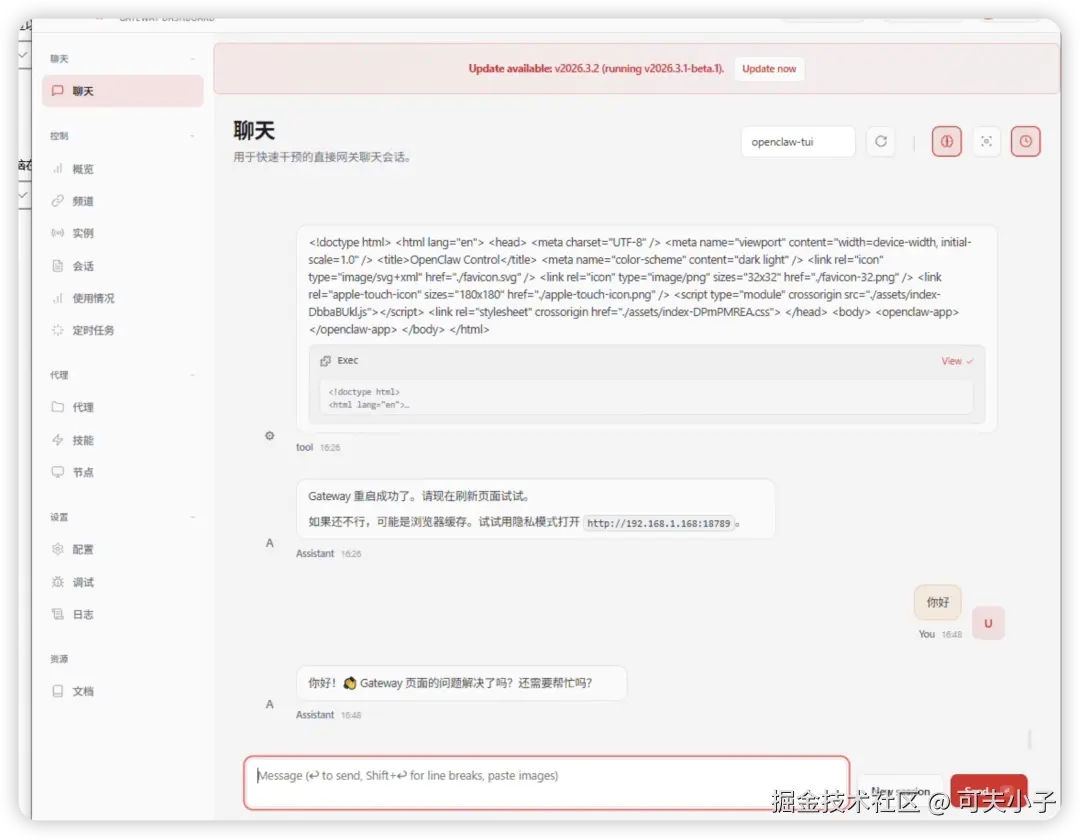 到此,gateway webui配置完成,可以在局域网任意一台PC上访问openclaw服务。