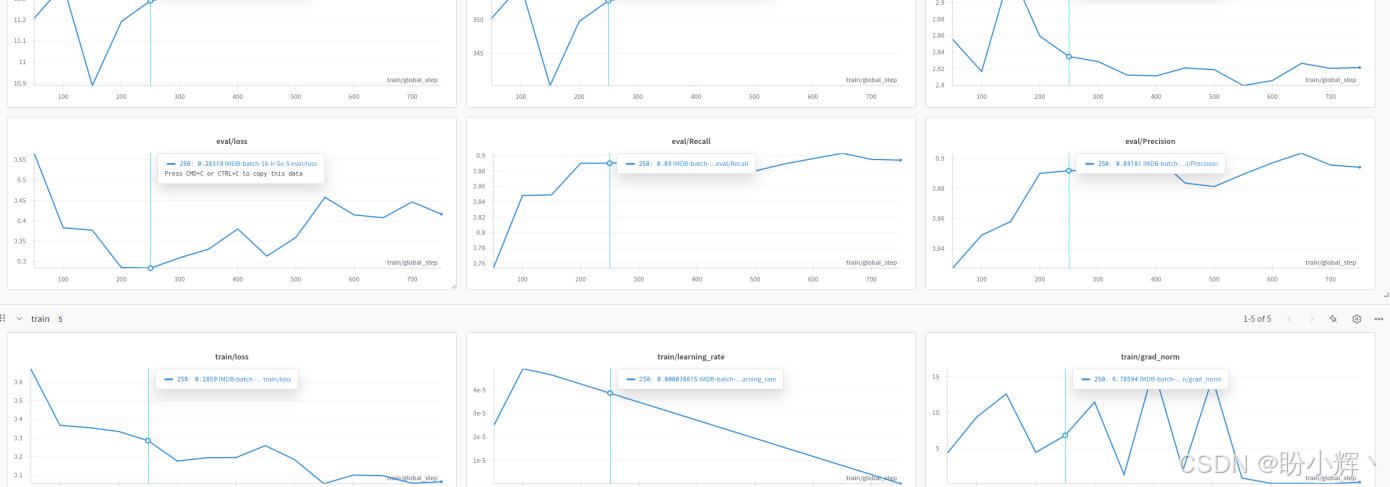 其中,logging_dir 的值将作为参数传递给 TensorBoard。由于训练数据集的大小为 4000,训练批大小为 16,因此每个 epoch 有 250 步 (4000 / 16),也就是说,三个 epoch 共为 750 步。