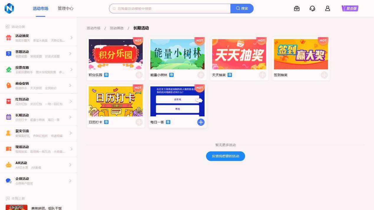 • 操作便捷且性价比高:内置3000+营销模板,包含签到抽奖、每日任务专属模板,替换素材、修改规则即可上线,5分钟完成搭建;推出营销版、至尊版、联合版三个版本,首年最低1299元,买2年送2年,年均价低至649.5元,支持免费试用,无隐形消费,适配各类中小商家及品牌方。