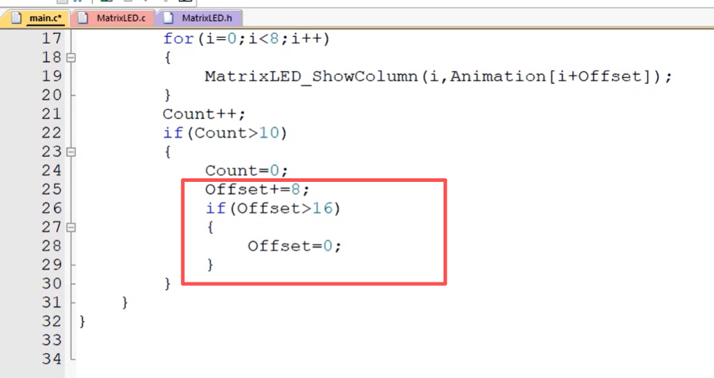 隔一段时间让offset增长, 就实现数字流动,扫描需要不断进行,这里不能调用delay,可以弄一个定时器,每隔一段时间让offset加1,也可以直接计次