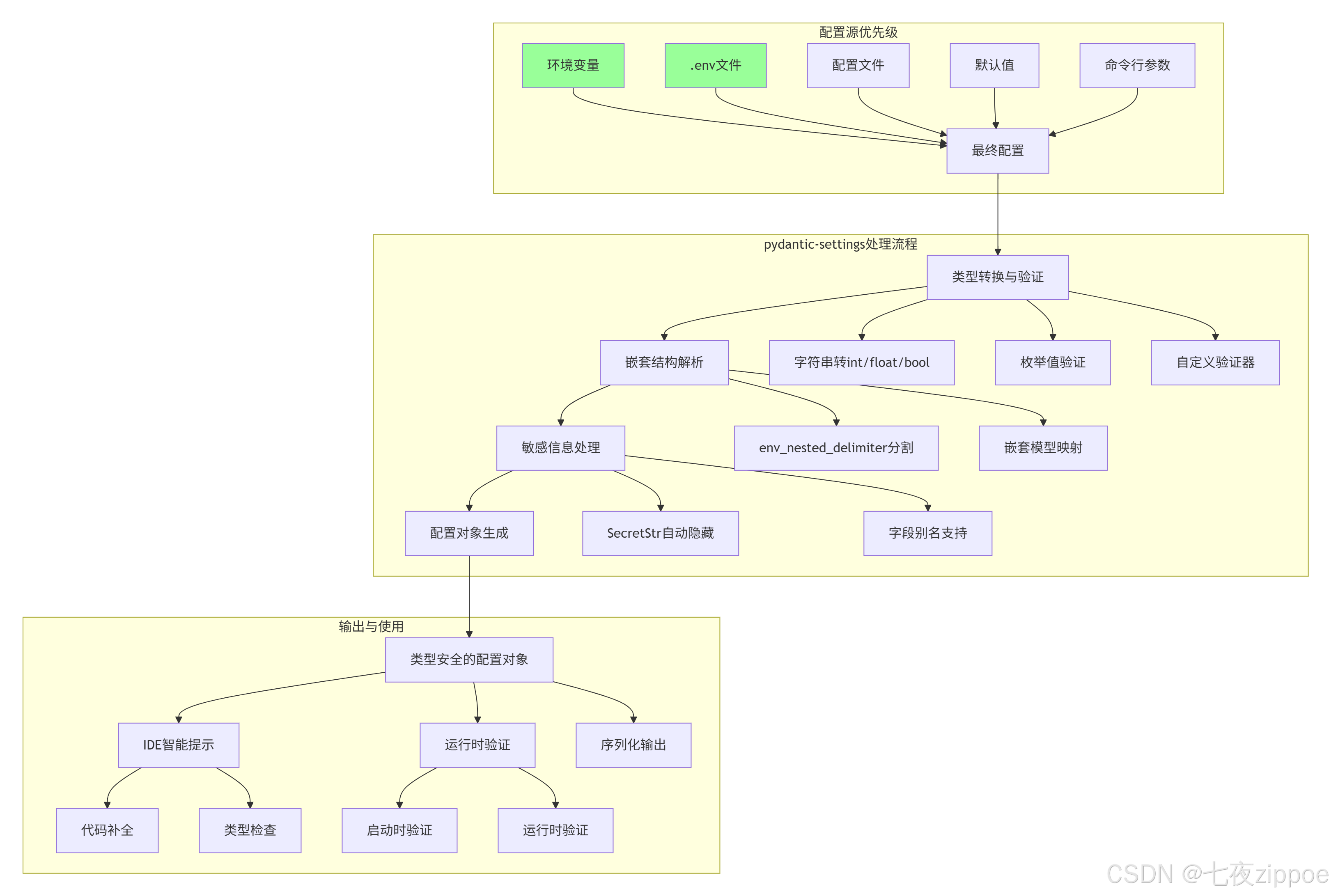 核心价值 :基于pydantic-settings v2.8.0,构建类型安全、支持热更新的现代化配置管理系统。关键技术 :环境变量智能解析、嵌套配置支持、动态热更新机制、配置中心集成。实战成果:配置错误减少90%,部署时间从分钟级降到秒级,支持千级微服务配置管理。