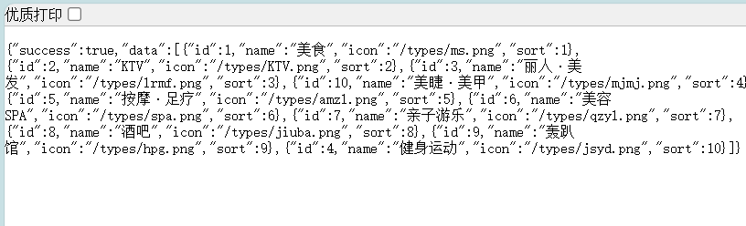 3.启动项目,在浏览器地址栏输入localhost:8081/shop-type/list