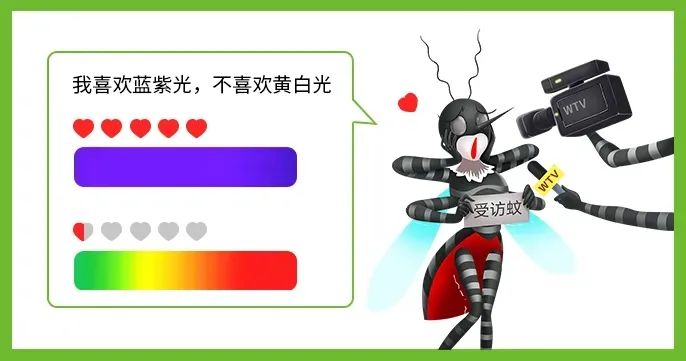 蚊虫对360--450nm波段的光最为敏感,该区域覆盖了紫外光与紫蓝光。