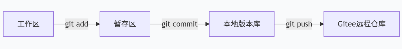 git add test.c→ 把工作区的 test.c 「打包」放到暂存区(.git/index);git commit -m "备注"→ 把暂存区的所有修改「归档」到本地仓库(.git/ 里的版本库);git push→ 把本地仓库的归档记录,同步到远程 Gitee 仓库。