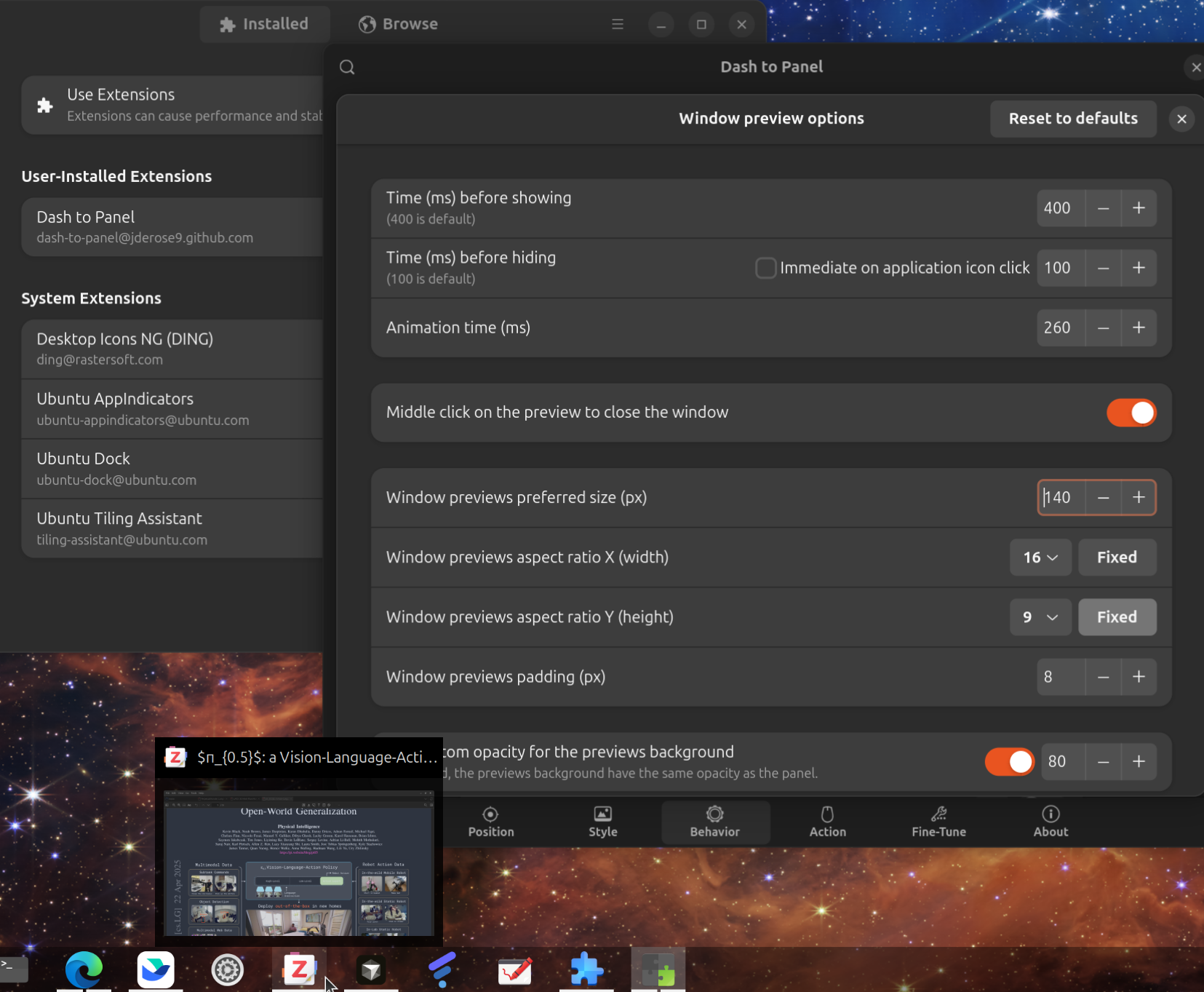 然后打开这个extension manager, 点browse,搜索这个Dash to Panel并安装,之后打开即可