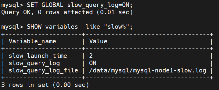 开启慢查询日志:
