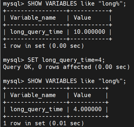检测慢查询日志(慢查询阈值):