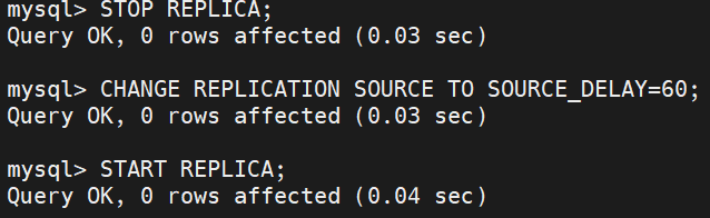 在被设定延迟复制的主机中查看动作是否被同步(60秒内库不变),延迟时间过后再次查看,库已经同步了。