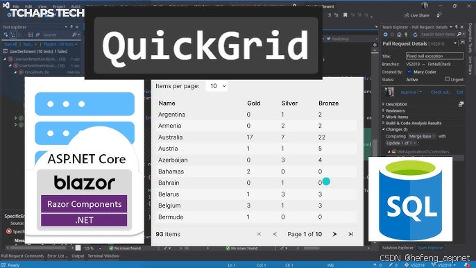 Required\] public string Name { get; set; } public Address Address { get; set; } = new(); } public class Address { \[Required\] public string City { get; set; } \[Required, StringLength(5)\] public string ZipCode { get; set; } } }  ### 5. QuickGrid 功能增强 QuickGrid组件在早期版本中引入,并在 ASP.NET Core 10 中进行了重大更新。QuickGrid 是一个轻量级、高性能的数据网格,专为在 Blazor 中显示表格数据而设计。 #### .NET 10 新增功能 RowClass 参数:开发人员现在可以应用条件行样式(例如,以红色突出显示逾期发票)。 虚拟化改进:大型数据集的处理效率更高,滚动更流畅。 扩展列选项:在排序、模板和列定义方面提供更多自定义选项。 影响: Blazor 现在提供了一个开箱即用的、可用于生产的网格解决方案,减少了常见数据驱动型应用程序对第三方控件的依赖。 @page "/orders" @using Microsoft.AspNetCore.Components.QuickGrid \