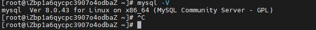 #: mysql Ver 8.0.43 for Linux on x86_64 (MySQL Community Server - GPL)