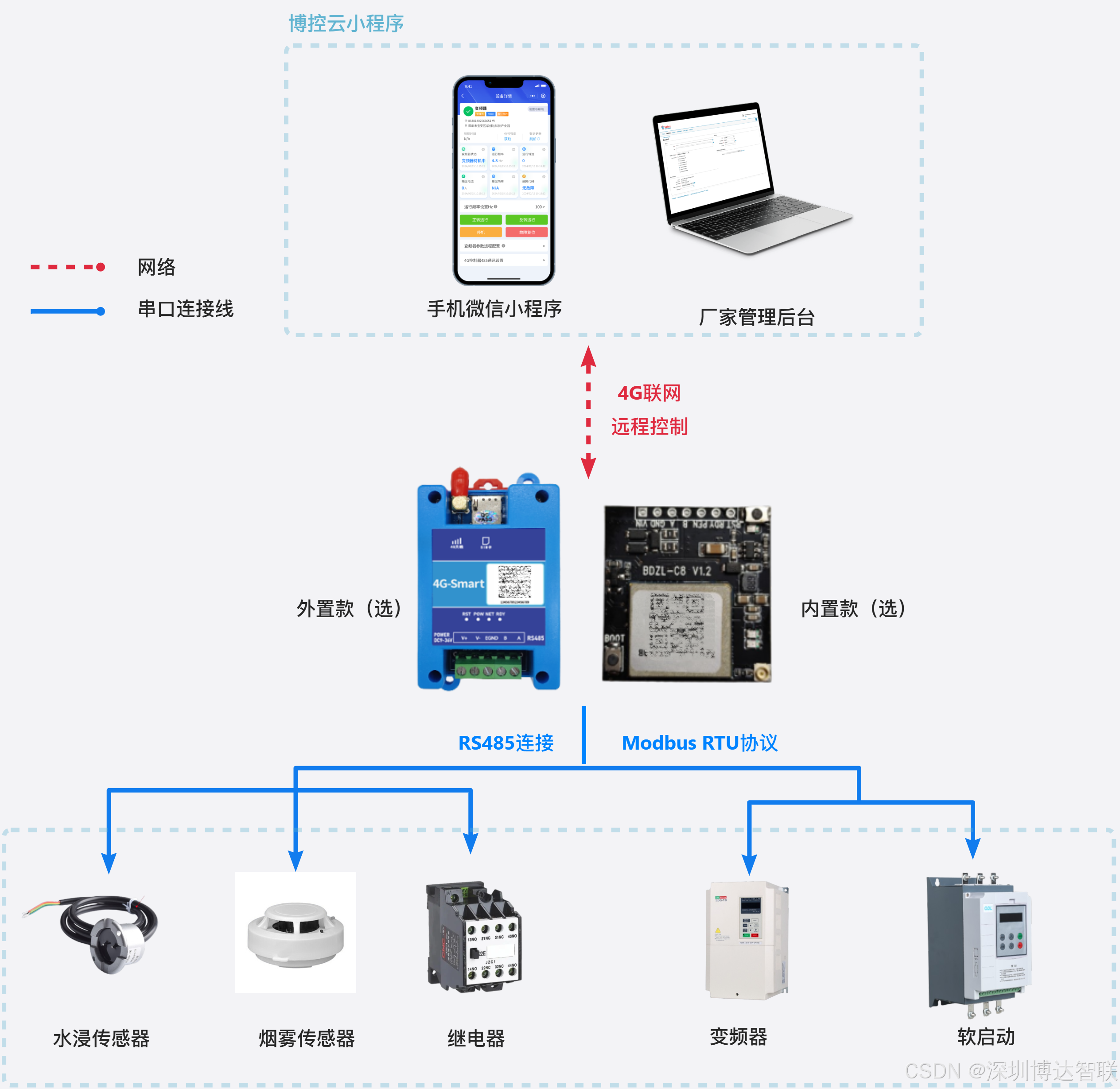 博达智联4G远程控制模块,依托稳定4G通信技术,搭配专属微信小程序与厂家管理后台,打造一套完整的变频器远程管控系统,真正实现手机远程控制变频器,让设备管理更简单、更智能、更高效。