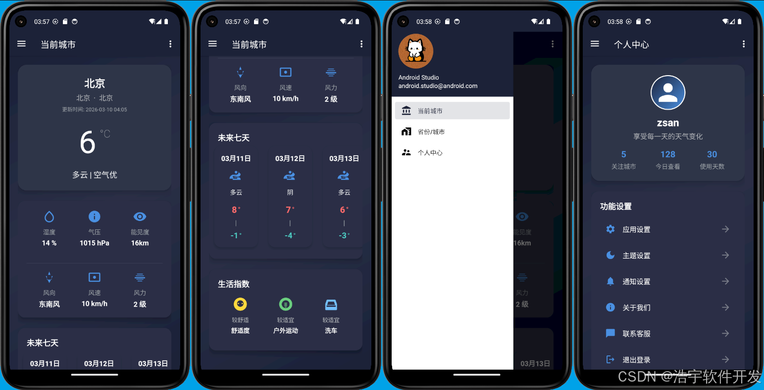 本项目是一个功能完善的Android天气应用,实现了实时天气查询、城市管理、用户系统等功能。通过使用MVVM架构模式和现代化的Material Design设计风格,为用户提供了良好的使用体验。