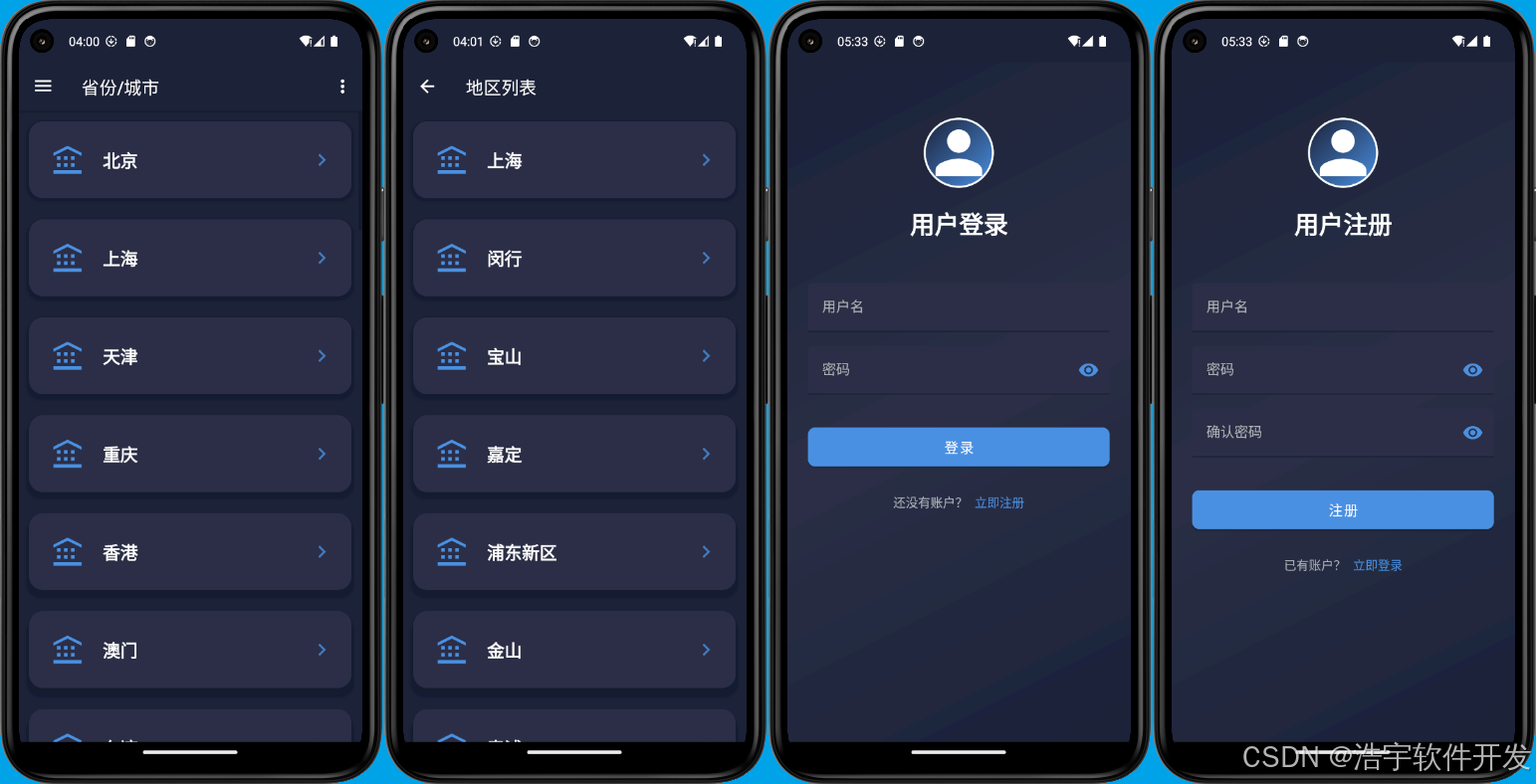 - 城市管理页面:展示城市列表,支持点击选择。