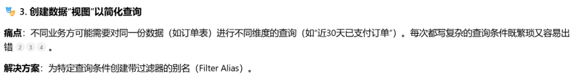 ②避免正则,通配符,前缀查询.避免模糊查询.如果要模糊查询,可以把大字段拆分为多个小字 段,动静分离把模糊条件具体化.
