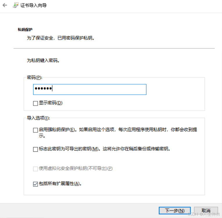 # 3. 输入密码 → 勾选"标记此密钥为可导出"