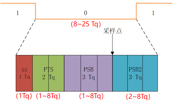 前面 3.2)介绍的位时序是制定 CAN 协议的公司规定的,但 ST 公司向来喜欢做一些修改,不过还好只是时间段的合并。