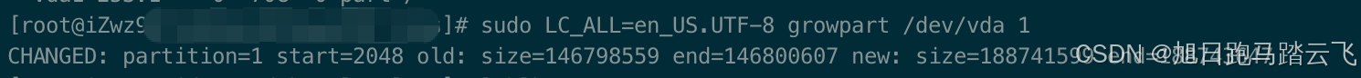 sudo LC_ALL=en_US.UTF-8 growpart /dev/<设备名称> <分区编号>