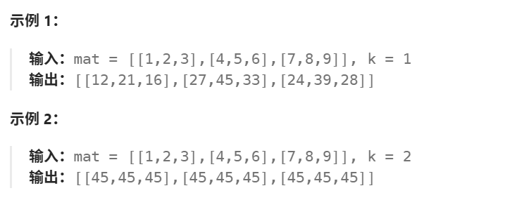 //i + 1和j + 1的目的就是为了和mat进行映射关系,sums[i + 1][j + 1] -> mat[i][j]