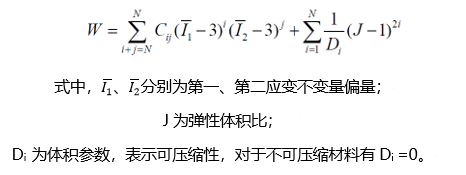 Mooney-Rivlin模型是多项式本构模型中的一种,其本构模型表达式如下:
