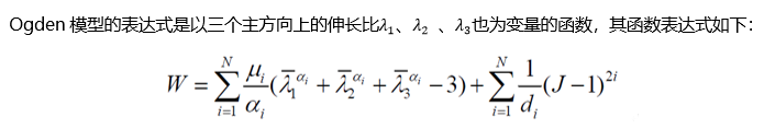 当N=1时就得到了Neo-Hooke模型,它是减缩多项式模型中最简单的一种,N-H模型表达式如下: