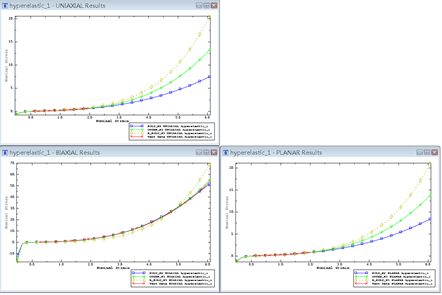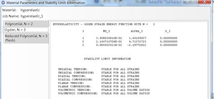 进入properties 模块,然后Create Material →Mechanical→elastic→hyperelastic,材料类型选择Isotropic,Input source选择 Test data ,并在Test Data下依次输入单轴实验、双轴实验和平面剪切实验数据。