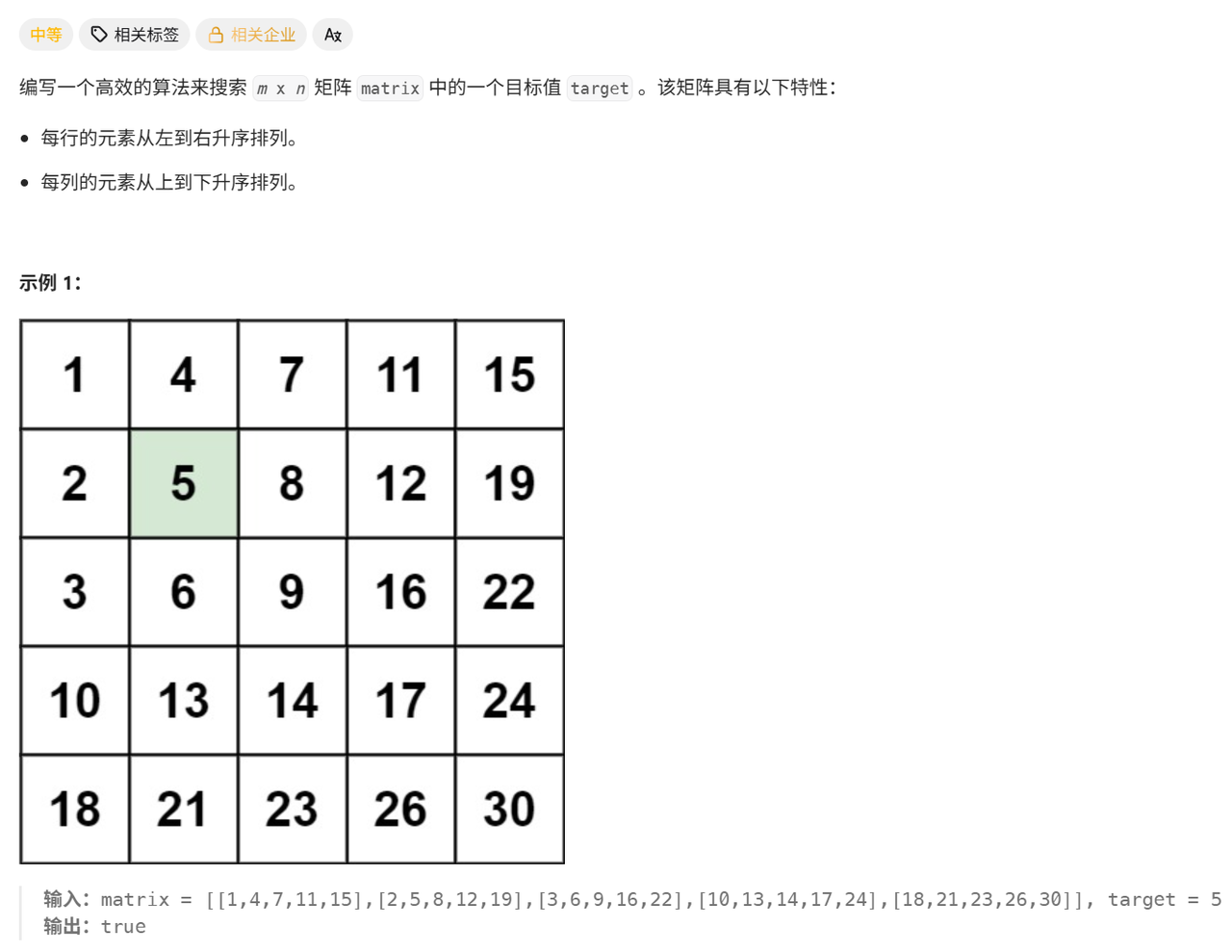 public class SearchMatrixII {
