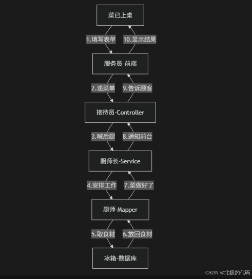 | 厨师具体炒菜 | Mapper层(数据操作) |