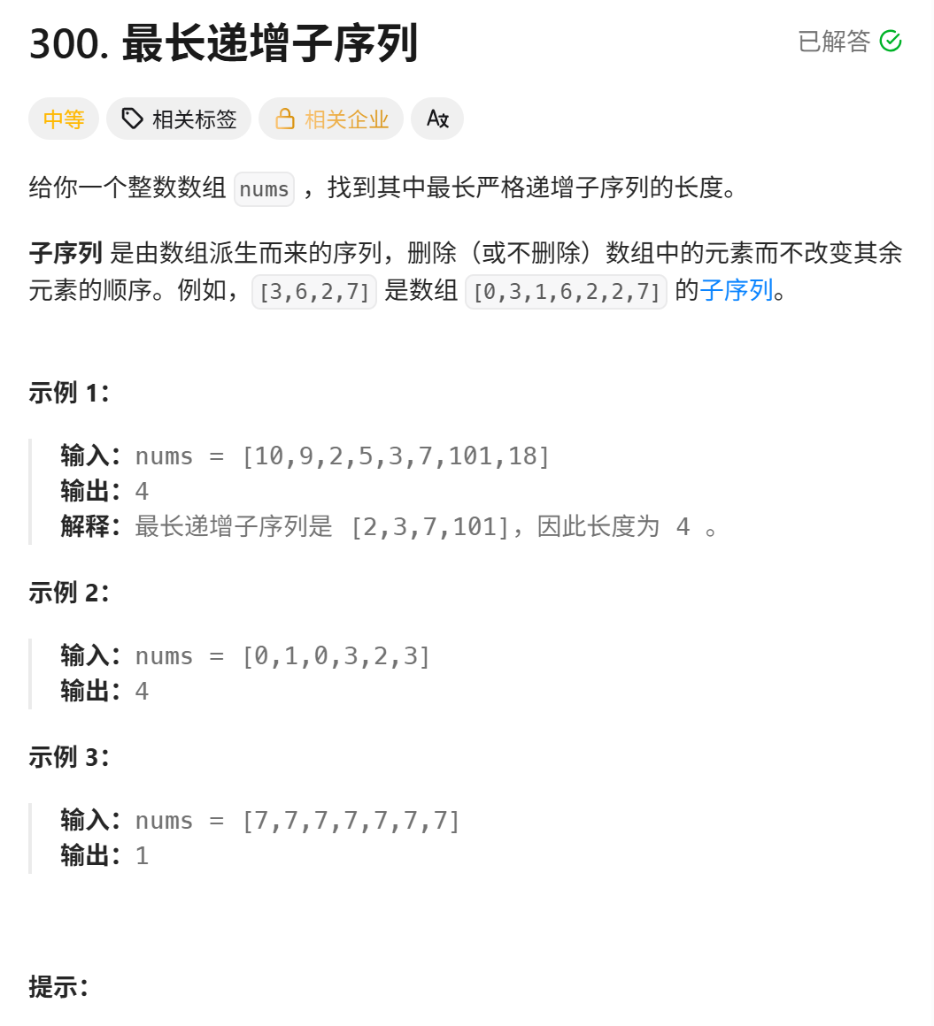 300. 最长递增子序列
