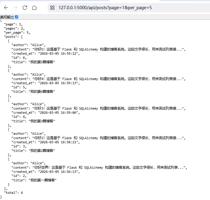支持分页:GET /api/posts?page=1&per_page=5