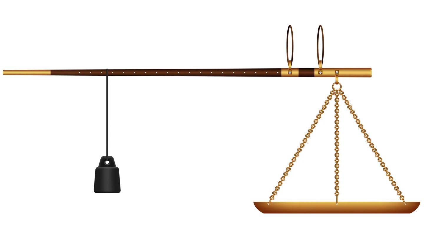 - 物重 × 物臂 = 秤砣重 × 秤砣臂;