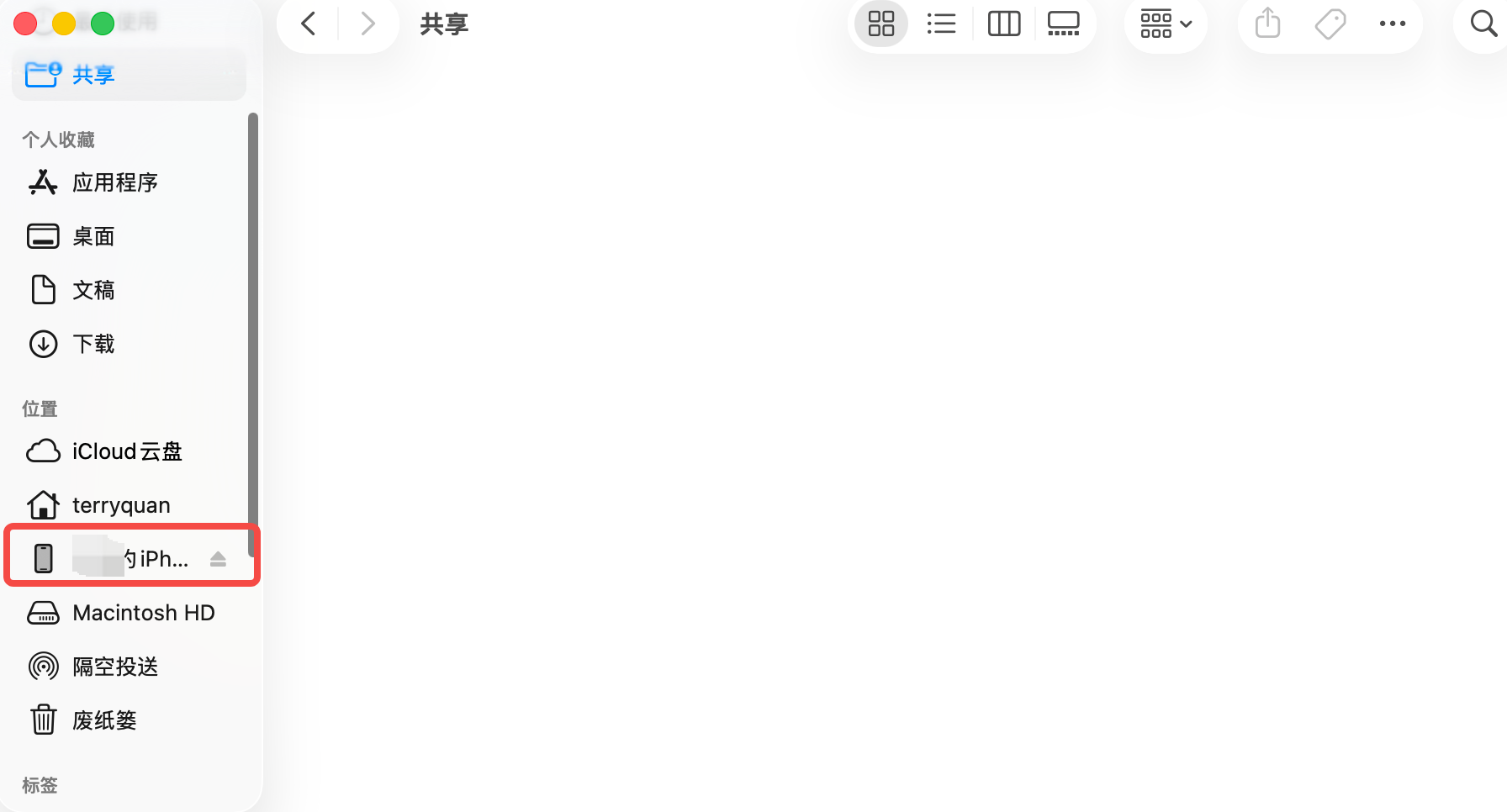 打开访达,在最左侧一栏找到你的手机,点击。