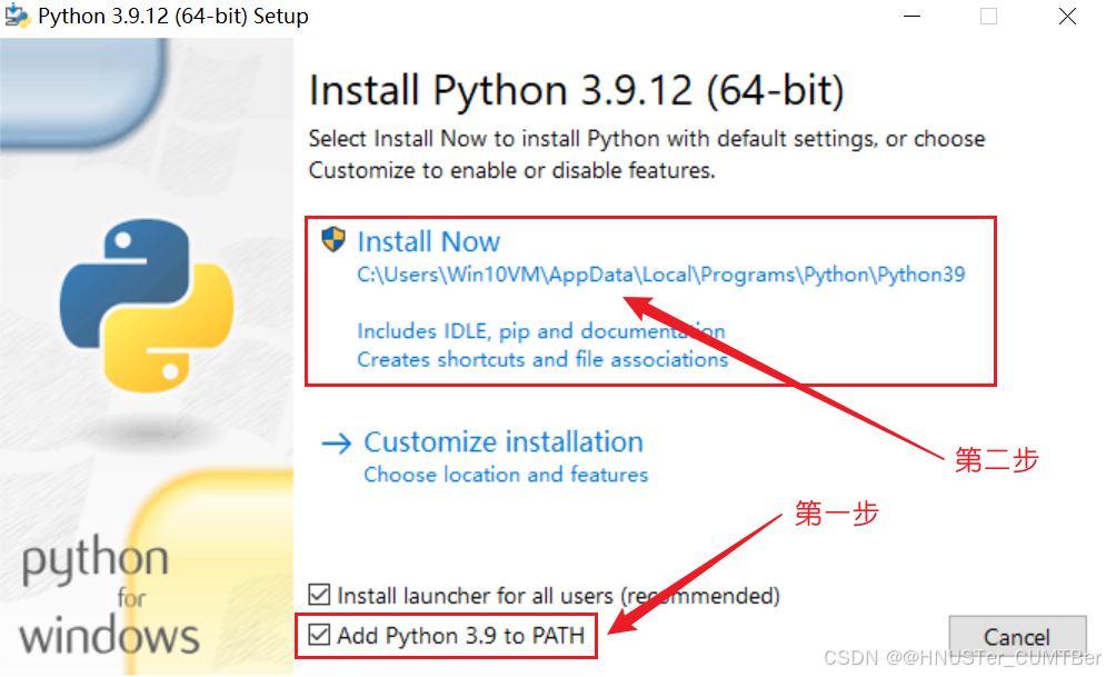 打开安装包,务必勾选 Add Python 3.9 to PATH,点击Install Now,安装完毕后点击close退出。
