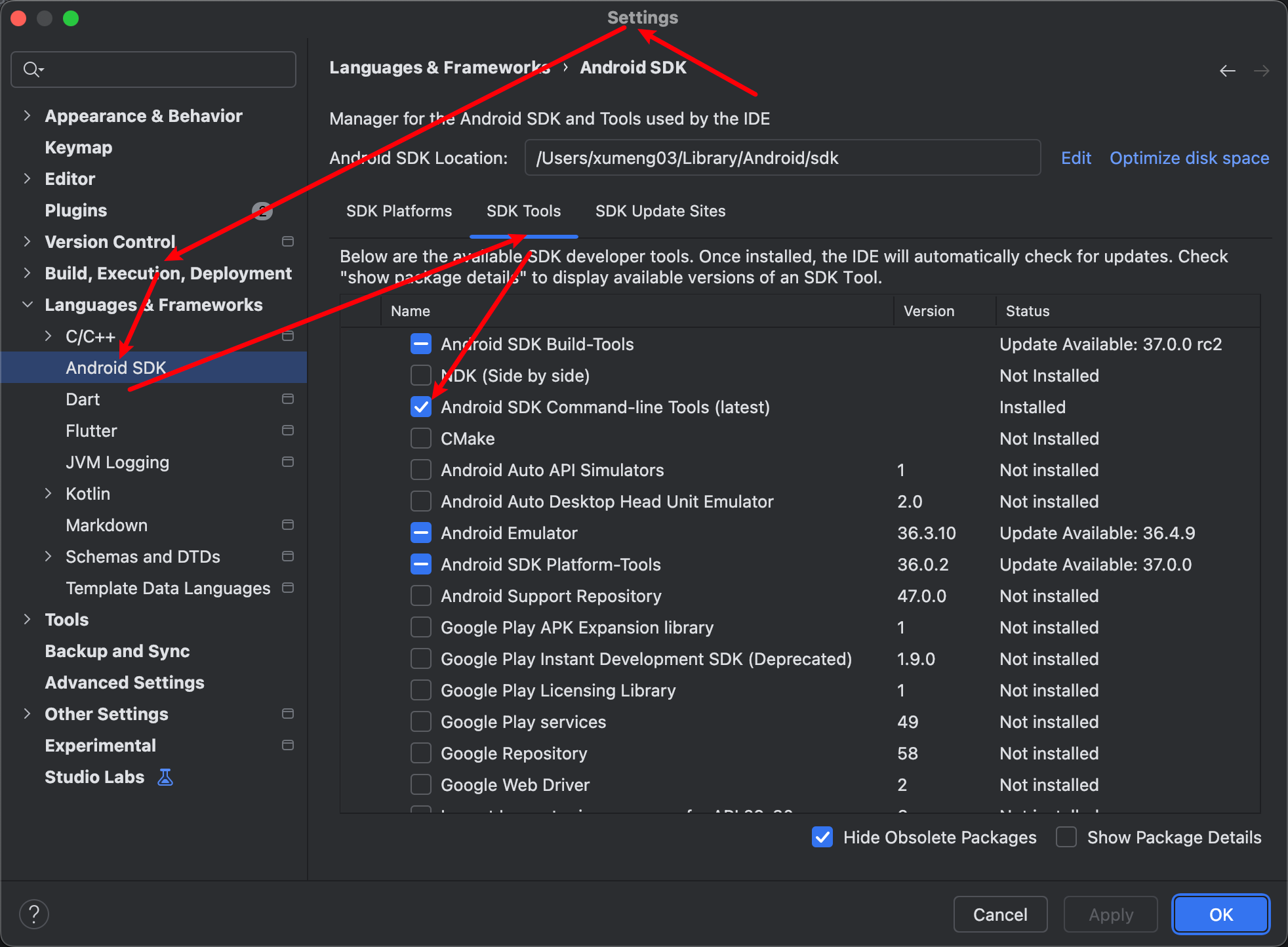 • Android SDK at /Users/xumeng03/Library/Android/sdk