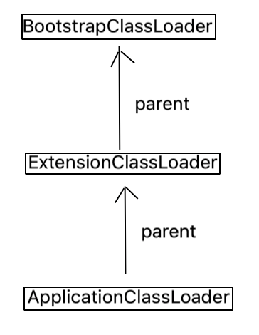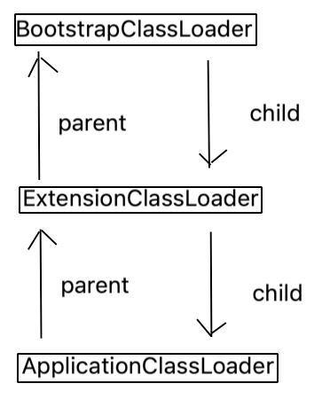 BootstrapClassLoader:负责查找标准库的目录ExtensionClassLoader:负责查找扩展库的目录ApplicationClassLoader:复杂查找当前项目 /第三方库的目录- 上述的三个类加载器,存在"父子关系"
