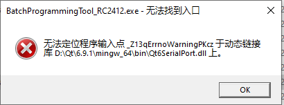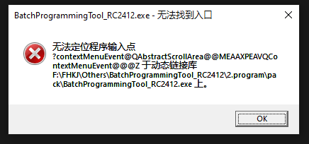 3、无法定位程序输入点?contextMenuEvent@QAbstractScrollArea@@MEAAXPEAVQContextMenuEvent@@@Z于动态链接库F:\FHK/Others\BatchProgrammingTool_RC2412\2.program\pack\BatchProgrammingTool_RC2412.exe _上,BatchProgrammingTool_RC2412.exe使用qt6编译生成