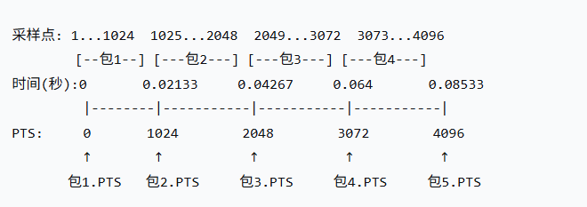 音频PTS计算:n为第n帧音频帧,nb_samples指的是采样个数(AAC默认1024),timebase是{1,samplerate},samplerate是采样率Samplerate = 48000, nb_sample=1024, timebase = {1,48000}