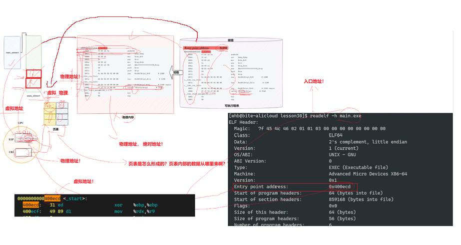 mmap系统调用,将 ELF 文件中的段映射到进程虚拟地址空间的对应区域(如只读可执行段映射到 0x400000 开始的地址); - 初始化内存 :