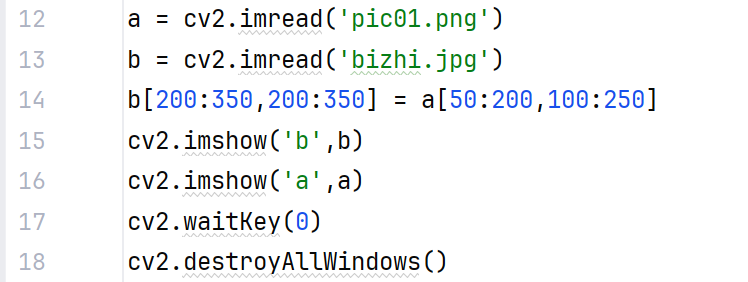 将图像a的局部区域,直接覆盖粘贴到图像b的指定位置,实现简单的图像合成。