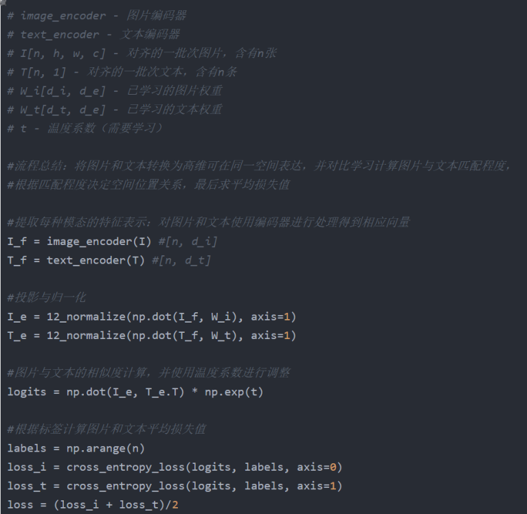 训练目标:让矩阵对角线上的元素的相似度尽可能高,而非对角线元素(负样本对)的相似度尽可能低。