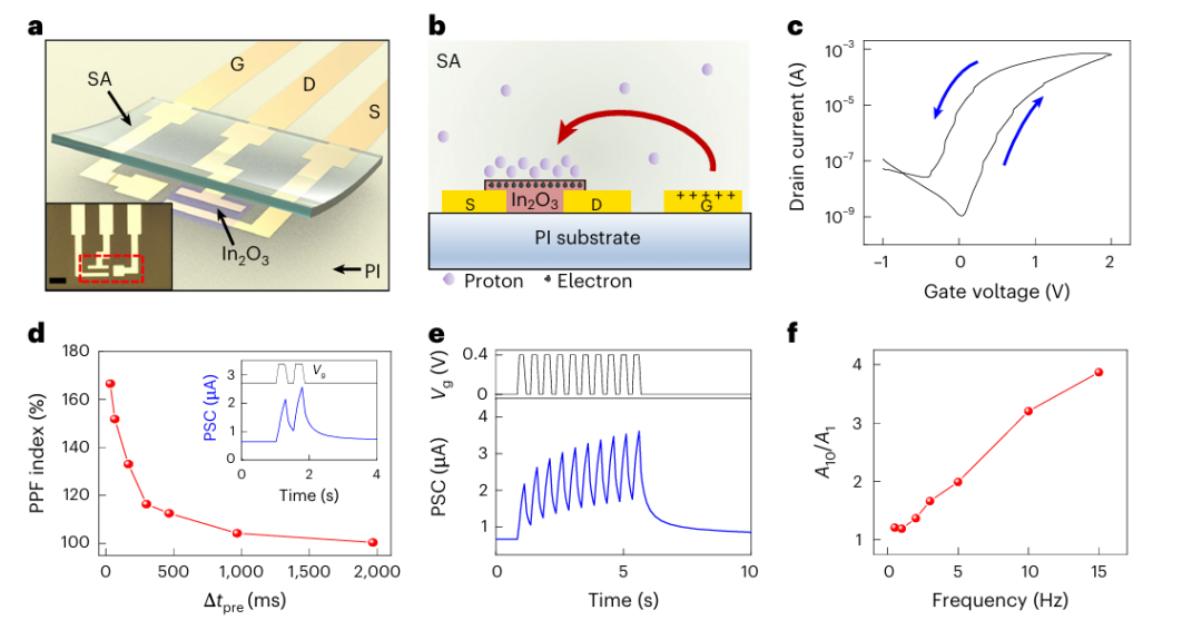 图2 | 双电层electric double-layer,EDL突触晶体管的器件结构与电学特性。